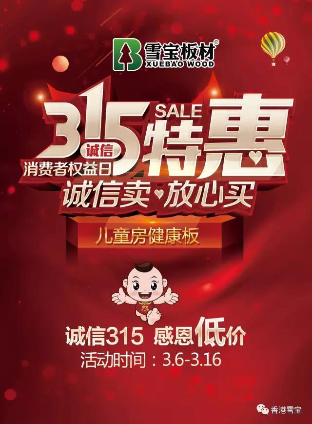 每年的315都仿佛是一道品牌的“鬼門關”,無數背后的真相浮出水面。但對于品質有絕對信心的品牌,這一天則是鑒證實力的時刻!致力于裝飾板材領域發(fā)展的雪寶品牌,一直堅持產品健康環(huán)保的品質,讓每個家庭都能享受安全舒心的居住環(huán)境。在315這個特殊的節(jié)日里,雪寶品牌用優(yōu)惠的政策讓廣大消費者檢驗產品過硬的質量!