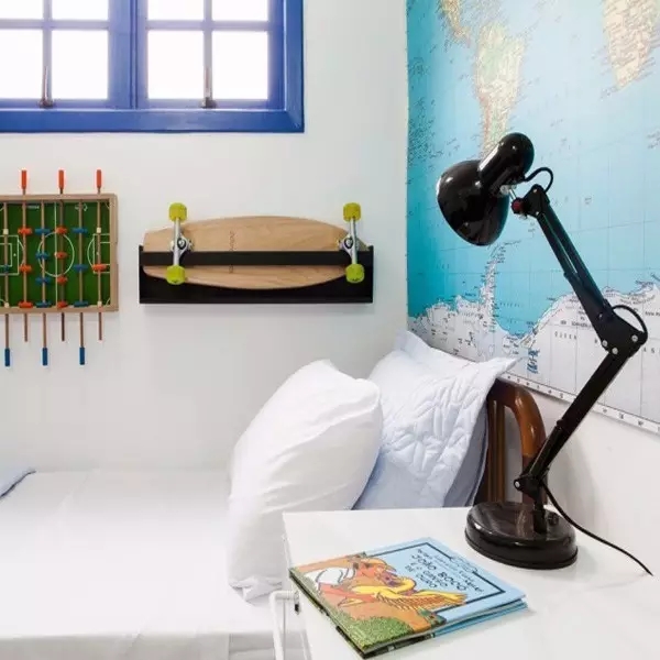 臺燈當(dāng)床頭燈使用,移動方便,靈活性強,加上其小巧可愛的造型又為這簡約的空間帶來靈動美。地圖裝飾墻壁,美觀的同時還可體現(xiàn)主人興趣愛好。