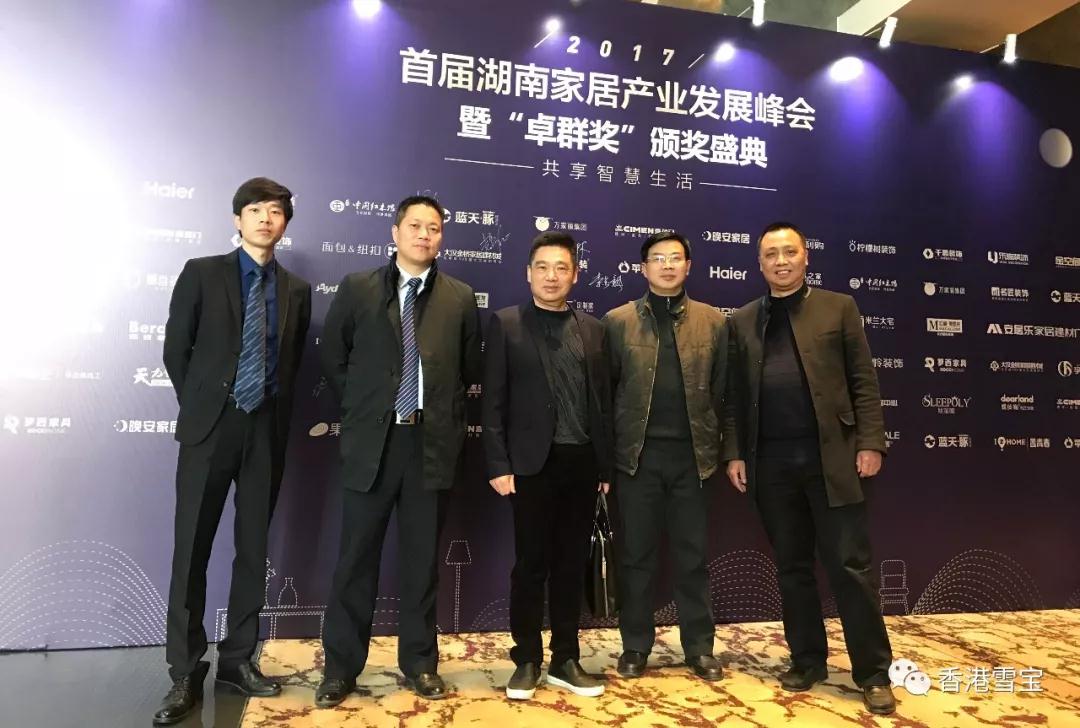 ▲2017年度卓群獎家居產業(yè)十大影響力品牌頒獎,雪寶國內營銷中心熊總(左二)上臺領獎;