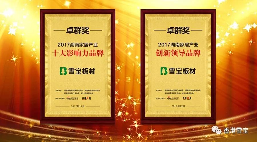 板材十大品牌雪寶板材榮膺2017年度家居產業(yè)卓群獎雙項殊榮!