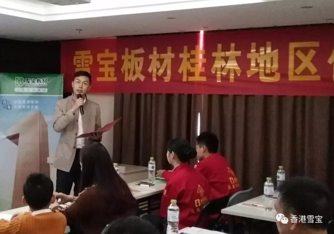 ▲雪寶品牌區(qū)域負責人侯經(jīng)理在雪寶板材桂林地區(qū)優(yōu)秀經(jīng)銷商培訓會活動現(xiàn)場致開訓詞。
